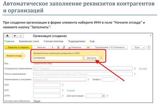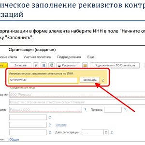 1. Всего за 5 секунд заполнит реквизиты в карточке контрагента по ИНН или наименованию
